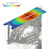 The study investigates the interaction between liquid steel and slag within a continuous casting mold using computational fluid dynamics. Two geometries were considered: a scaled hydraulic water/oil model and an industrial-scale mold containing liquid steel, slag, and optionally injected argon gas. An incompressible multiphase solver with interface tracking was employed for both cases. The water model results were validated quantitatively against experimental data from Mass transfer coefficients across dynamic liquid steel/slag interface, while the industrial-scale simulations and the effects of argon injection were analyzed qualitatively due to limited experimental data.