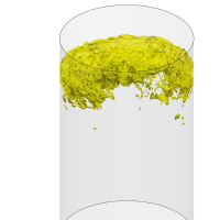Initial simulations were performed on the base of the water/oil model of the ladle. For the simulations incompressible multi-phase solver with Volume-of-Fluid interface tracking algorithm is used. Dynamic mesh refinement is used on water/oil and water/air interfaces for correct shear stress prediction. To reduce simulation time we attempted to use load balancing, yet finally we opted for weighted mesh decomposition, which is more stable.